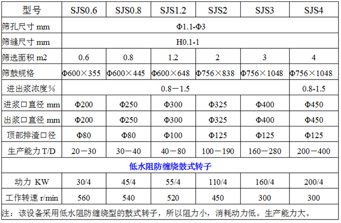 二、疏解型升流壓力篩技術(shù)參數(shù)表: